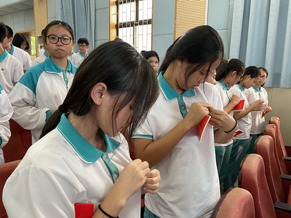 为庆祝建党99周年,火炬二中于6月29日下午举行了新团员入团仪式暨少先队离队仪式,通过“集体离队”等学生自我教育的活动形式,帮助学生迈好“青春第一步”,“扣好人生中第一颗扣子”,从而使学生明确将要肩负的历史和社会责任,培养开拓进取、奋发向上的拼搏精神,激发学生热爱共产党、热爱共青团,热爱少先队的思想情感。
