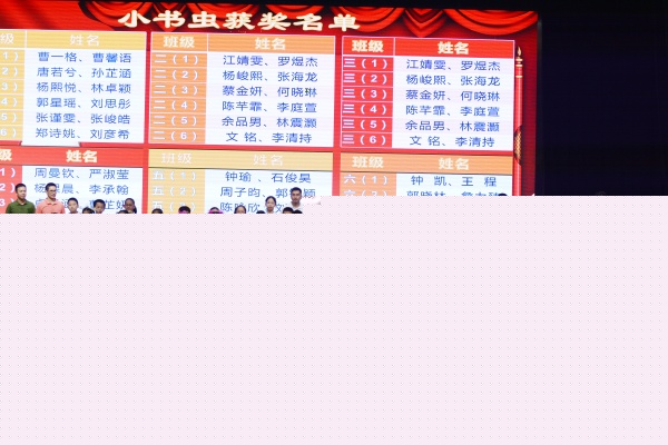 在节目汇演之中,穿插了两次表彰。既表彰了经典诗歌书获奖的同学,也表彰了第十九届读书节的“小书虫”。