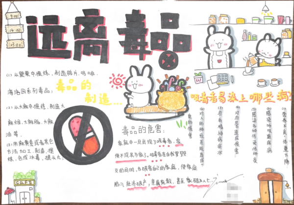 禁毒活动另一个重要方面是手抄报、作文、绘画作品征集。这次征集活动一共收到禁毒手抄报、绘画作品150余幅,征文80余篇。经过德育处的几名评委老师的认真评选,分别评出了手抄报、绘画和征文作品一等奖15名,二等奖20名,三等奖30名,优秀奖若干名,并为获奖学生颁发了奖状。