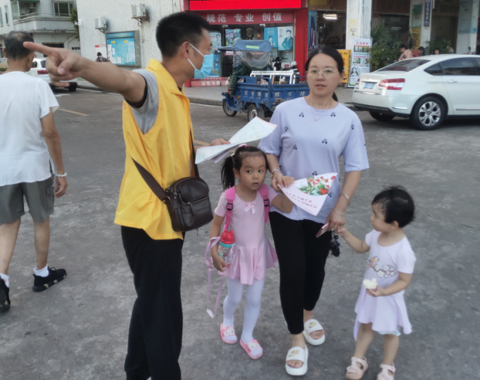 当天傍晚,在三小唐秉晶校长的带领下,开发区第三小学志愿者走进了濠头联富社区尚城小区、丽港城小区,协助社区干部派发创文倡议书以及帮助居民进行创文小知识问卷等。