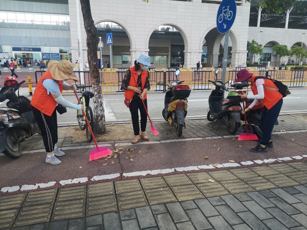 当天上午8时20分,开发区第三小学16名志愿者教师在学校党支部宣传委员吴书丽主任的带领下,对轻轨中山站门口周边路段进行大扫除,开展环境清洁工作。经过一个上午的共同努力,站前路段被清理得整洁干净,其面貌焕然一新,公共秩序更加井然。