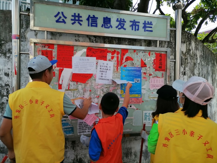志愿活动中,志愿者们积极发扬奉献精神,不怕脏、不怕累,他们手拿扫帚,对地面杂物和卫生死角进行了清洁打扫。小志愿们更是热情高涨,纷纷戴着手套清除路边的杂草,还对粘贴在社区宣传栏上的广告进行了清除。路上的行人都不禁驻足竖起大拇指称赞。经过全体志愿者的共同努力,社区环境焕然一新,孩子们一边擦着汗水,一边露出满意的笑脸。