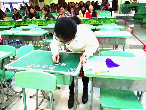 大赛分为课堂教学、粉笔字书写、讲演故事、知识素养答题、才艺展示、现场作文几个部分。每一赛项均由评委现场打分,虽然比赛时间紧,要求高,但参赛老师各个胸有成竹、沉着应战。