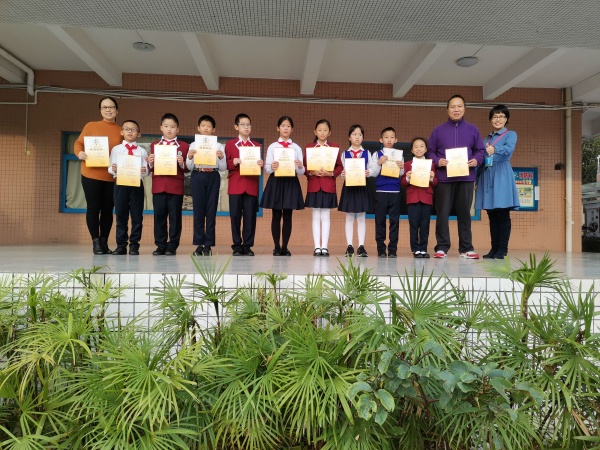 2019年12月23日,石岐第一小学在升旗仪式期间,为2019年广东省航空航天模型公开赛获奖同学颁奖。