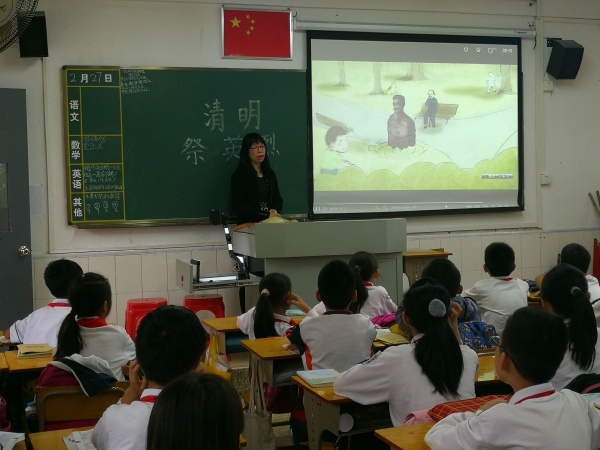 首先,全体师生集中在操场隆重举行升旗仪式,六(3)班陈梓铫为全体队员做主题演讲:?永远的纪念?,以此沉痛悼念为国捐躯的英灵,深切缅怀先烈们的丰功伟绩,回忆过去的峥嵘岁月,以表达队员对革命先烈的无限哀思,将历史永远铭记在自己的身上。接着,各班开展主题队会课,主要以PPT播放兼视频故事讲解等形式开展活动,引导队员了解“清明节”的来历、习俗和革命先驱的故事,对队员们进行革命传统教育和爱国主义教育。班会上,队员们逐渐被革命故事感染,并纷纷表明以后要认真学习,努力奋斗,继承先烈们的革命遗志,努力成为一名合格的社会主义建设者和接班人。