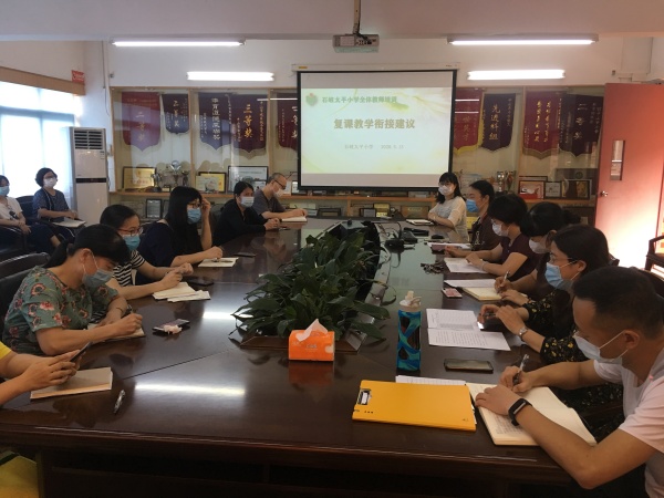 会议由陈红副校长主持。会议内容主要讨论了三个议题:一、线上线下教学衔接;二、复学后教学安排; 三、复学初期部分身心灵活动培训。