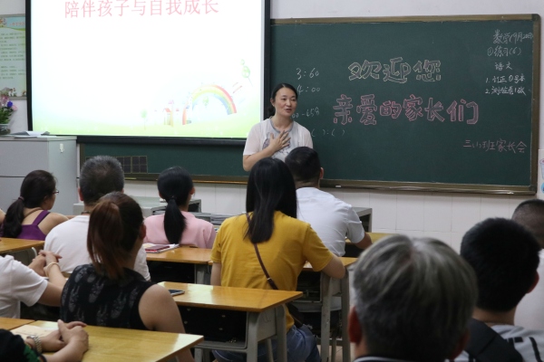 本次会议共分为四项议程:颁发学校家委聘书;郑结霞校长做《迎祖国大庆 保校园平安》家庭教育主题讲座;语数英科组长做《做孩子学科学习的引路人》的学习方法分享;家长们和任课老师们深入交流。