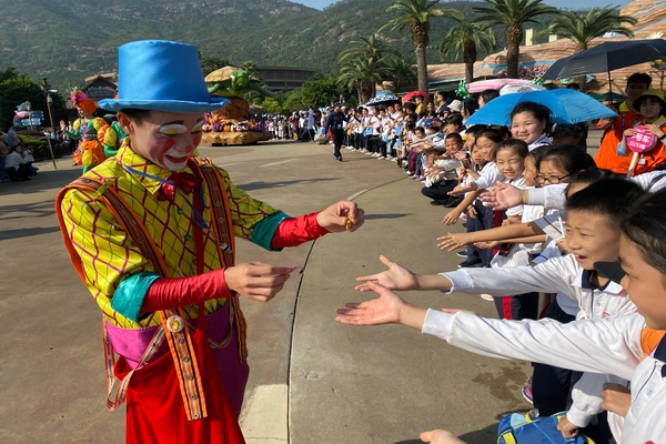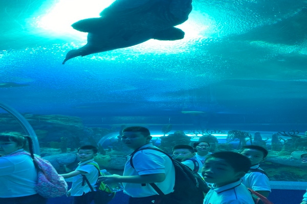 一路欢歌,一路笑语。在带队老师的组织下,有的班级在车厢里开展了朗诵比赛,有的班级进行小歌星才艺展示,有的班级则来个集体大合唱活动。车上洋溢着同学们的欢声笑语,大家都对本次研学活动充满了期盼。经过一个多小时的车程,就到达了同学们翘首以盼的目的地——珠海长隆汪洋王国。