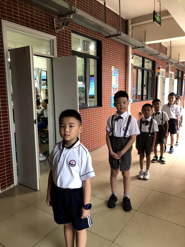 在黄荣胜校长、苏凤群副校长的正确带领下,全体行政、一至三年级所有教师、家长护校队等通力配合,为学生平安返校保驾护航。每位学生在值日行政与教师的指引下保持一米距离,进行体温检测,严格把好入学第一道关,保证每位学生健康进校园。