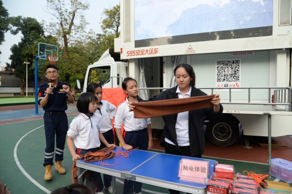活动开始,张溪郑二小学李振华副校长强调了宣传防空防灾知识,提高师生防空防灾意识的重要性。接着中山市住房和城乡建设局(人防科)的宣讲员给大家进行了系统详细的讲解。他先向大家普及了关于人防的知识,接着给师生们重点讲解了遭遇火灾和毒气污染该采取什么措施防止或减少受到的伤害。最后他还邀请学生进行了触电体验,模拟火灾和毒气泄露现场,让学生实践操作所学的防灾知识。学生在体验式教学中感受到了灾害的可怕,也牢牢地掌握了防灾减灾知识。整个活动过程充满趣味性,师生们都受益匪浅。