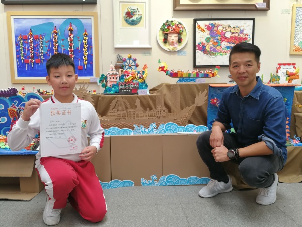 石岐第一小学是中山市版画特色学校,非常重视学生的艺术教育,为了本次比赛,美术科组长刘杰雄老师从作品构思、表达方式、材料选择到最后的展览方式,每个环节都对展览的作品进行了辅导,使得几幅作品最后呈现出来的效果非常大气,做工精美,经过层层筛选,获得评委们的一致赞赏。
