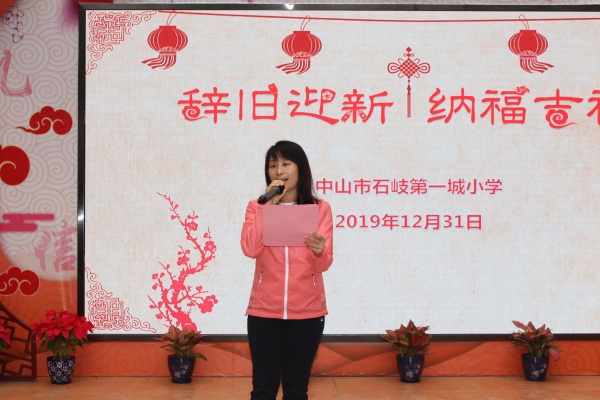 这一天,不仅是石岐第一城接受“科普校园e站”授牌的一天,也是全校师生一起辞旧迎新,庆贺元旦的日子。李慧冰校长对过去一年学校的工作做了总结和肯定,鼓励大家2020年继续努力,越过越好!在热闹的音乐声中,石岐第一城小学两位校外辅导员——来自中山电视台的陈剑祥、巢志高老师和梁校长一起为学校老师送上一份美好的礼物——“福”字新年年历。