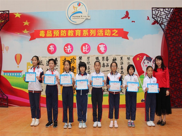 2019年11月4日,石岐第一城小学还对书画比赛中获奖的同学进行了颁奖。活动收到了六个年级的手抄报、书法、绘画作品,大部分作品画工精湛、字迹工整、笔精墨妙。学校根据作品的内容和表现形式,各评选出5名特等奖、10名一等奖、15名二等奖、20名三等奖及20名优秀奖作品,同时评选出了8个优秀班级组织奖。此次禁毒主题绘画比赛活动,同学们以喜爱的绘画形式表达拒绝毒品的意识和决心,在完成作品中会主动了解毒品常识、禁毒历史、防毒技能等相关知识。