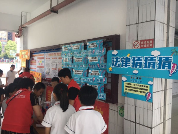 法治课堂结束后进入了活动的高潮,中山市社会工作者协会的工作人员通过设立5个游戏摊位,有反邪教大作战、法律猜猜猜、扫黑除恶大冲关等区域。这些丰富有趣的活动,寓教于乐,既让学生们体会到了游戏的快乐,也让他们在游戏娱乐中识邪教、辨邪音、甄邪事、抓邪者。此次活动还引入了积分兑换奖品的机制,每个学生手中都发了一张积分兑换卡,学生们每通过一个游戏,就能积1个印章,集满5个印章,就能够兑换学习用品或日用品。这充分推动了学生参与活动的热情。