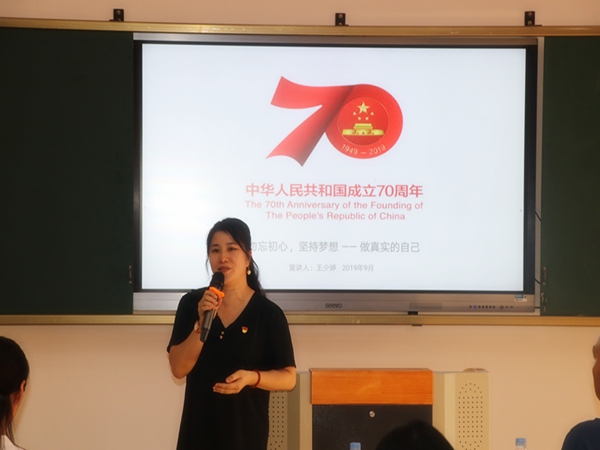 王少婷同志为大家带来了一节生动精彩的党课,党课紧紧围绕“勿忘初心”和“坚持梦想”两个方面展开。课上,王少婷同志用自己的成长经历,讲述了对党的忠诚,对祖国的热爱。从中国银行的大堂经理考进市财政局做公务员,再到转行从事公益行业成立了中山市社会服务联合会,王少婷同志一直保持初心、坚持梦想,始终致力于党建工作。不论是在工作中,还是在生活中,王少婷同志都以一名党员的身份高度要求自己。自从成立中山市社会服务联合会以后,她每年都到全国各地开展公益性的讲座,积极宣传党的主张,努力跟随党的脚步。此次党课内容全面系统、内涵丰富,具有很强的思想性和针对性,对广大的教师具有十分重要的指导和现实意义。