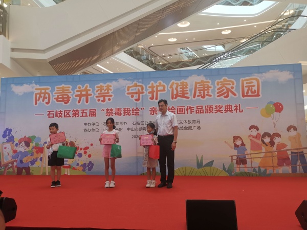 2020年6月21日上午,石岐区第五届“禁毒我绘”绘画作品颁奖典礼在完美金鹰广场举行,石岐张溪郑二小学师生代表出席了此次颁奖活动。三年级陈海灵、曾珂静同学的作品《莫被“毒”诱惑》获得低年级组一等奖;二年级马嘉逸、李若瑜同学的作品《爱是最好的保护》获得低年级组二等奖;五(2)班黄可悠同学的作品《拒绝毒品,人人有责》获得高年级组一等奖;四(2)班黄妙韵同学的作品《两毒并禁,守护健康家园》获得高年级组三等奖;毕晓纯、曹陈天等6位同学的作品获得优秀奖。