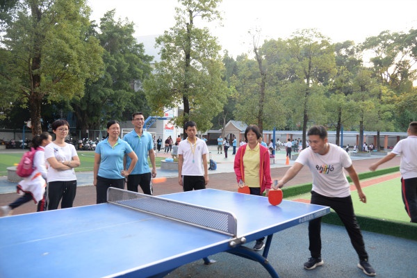 第一个项目是定点投篮比赛,每个级组派出5人参赛,每人投篮5个。一声令下,只见老师们个个摩拳擦掌,全神贯注,奋勇一跃,在经过几次尝试之后,老师们的命中率也越来越高,在投中的瞬间,全场总是掌声雷鸣,令人振奋。第二个项目是乒乓球比赛,每个年级组派出5名代表分别参加单打和双打,比赛过程高潮迭起,选手们一个个精彩的防守和绝杀都引起观众们的阵阵喝彩。最后根据总得分分别评出表现优秀级组,并颁发奖状。活动第三项,工会成员给全校老师颁发活动纪念品。沐浴着阳光,大家带着最灿烂的笑脸留下了最美的大合照。