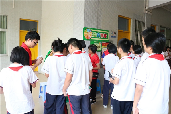 精彩的讲座完毕,同学们来到会场外面,展开了回答问题赢取奖品的法治小游戏。同学们热情高涨,争先恐后,有序排队答题。“打击犯罪人人有责”“反邪教大作战”“法治大转轮”“法律猜猜猜”,在这些游戏中,同学们认识了许多法治知识,在快乐中学习。经过刺激的游戏,同学们不仅收获了知识,还收获了丰厚的奖励。