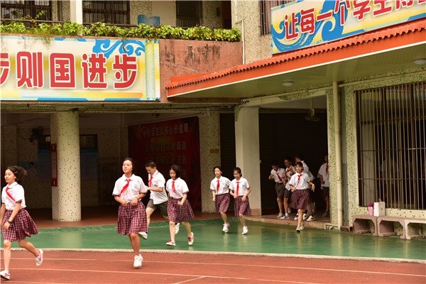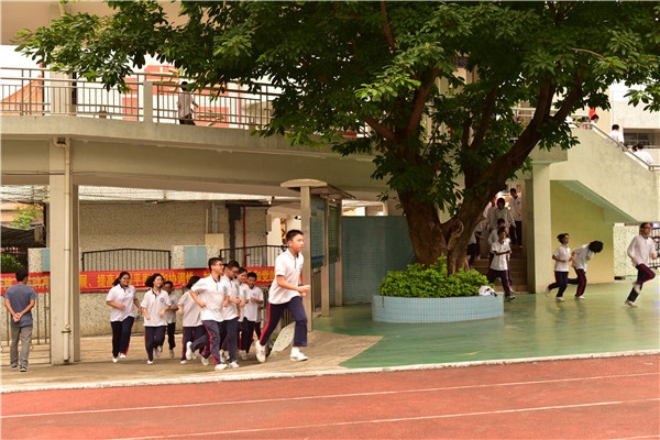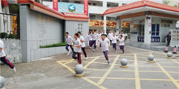 随着一声哨响,安全疏散演练正式开始,全校一千多名学生从不同的教学楼奔向疏散目的地:学校操场。整个过程紧张有序,既注重安全,又突出速度。根据现场的统计,整个安全疏散演练用时2分50秒,全体学生均安全撤离到操场。