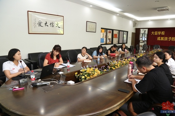 8月29日上午,大信学校教学顾问胡老师对全体新教师传授教学策略。她结合大信学校的实际情况详细地给新老师讲解了备课要求和注意事项,并且毫无保留地分享了自己在突破重难点、巧妙设计教案方面的方法。胡老师强调,教师在备课时既要备教材还要备学生,注意对学生思维的训练、语言表达能力的培养和课堂效率的提高,从而让学生幸福满满地走出课堂。最后她希望:“新教师不断阅读,不断写作,不断努力,不断成长。” 紧接着,教导处邱雄兵副主任给新教师详细介绍了学校创建学生社团的目的、学生社团的种类、开展的时间及要求。他强调,大信学校以“提升孩子的素质,成就对孩子的幸福人生”为办学理念,致力于为每一个学生提供张扬个性、发展特长、提高能力、享受成功的机会和平台,希望每一位新教师都能发挥所长,参与到学生社团的建设当中。下午,教导处李豪主任给全体新教师上了实用性的一课——无纸办公系统及相关教学硬件设施的使用。无纸办公系统在提升教师工作效率、便捷沟通方面发挥着重要的作用。同时,为提高教学质量,做了强而有了的物质准备。