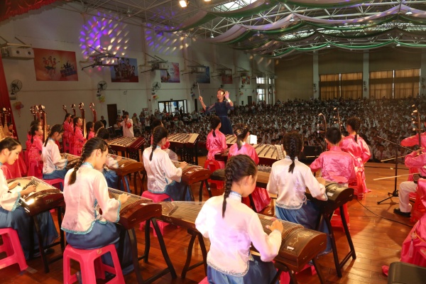 民乐是中国音乐的重要组成部分,刘雪映老师指挥着校民乐团的孩子们为观众们献上了合奏《茉莉花》、《金蛇狂舞》。古筝、扬琴、琵琶、二胡和若干打击乐器在孩子们的演奏下,和谐而又动听。身着古典服装的孩子们在刘老师的指挥下,轻拢慢捻、提拉勾弹、擂敲捶打,尽展民乐的魅力!