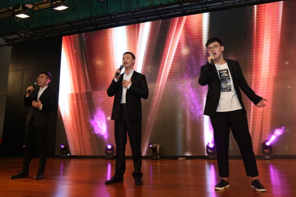 “……新时代的号角中再一次出发……追梦的人们雄姿英发……”,雄浑的气势,高亢的歌声,这是陈晋宁、田中阳、李鸿锷老师表演的教师三重唱《再一次出发》。三个声部的精心配合,让听众们热血沸腾,豪情满怀!