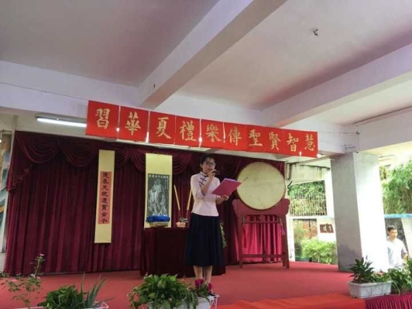 释菜礼结束后,虞彩花校长致辞,虞校向全校教师致以节日的祝福,并向同学们说明了学校为何每年9月28日都举行释菜礼,因为这是一种传承,希望通过这种传承,每位同学都能感念老师的教育之恩,以此激励同学们能正心修身,努力向学!做社会上有用的人。