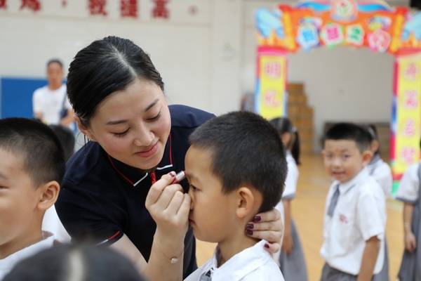 活动最为精彩是是“入学拜师”环节。在老师的带领下,一年级新生双手作揖行礼。首先“拜孔子”,追思先贤,认真学习和践行古代儒家经典;然后“拜老师”,感恩老师辛勤付出。随后,老师们为新生点上“朱砂点”,祝愿新生从此聪明好学、智慧过人。最后,在老师们的带领下,新生们走过“智慧之门”并与学校领导击掌庆贺,寓意新生们即将在香小的关怀下踏入知识的殿堂,开启新的智慧之旅。