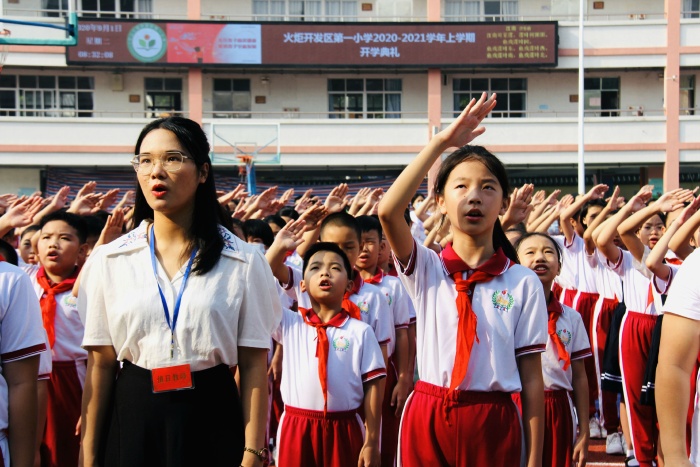 炎炎夏日即将过去,正是“风暖花艳蒸蒸日上”之时。同学们度过了一个安全、快乐的暑假,满怀着对暑假生活的美好记忆神采盎然地回到学校。在渐渐步入秋天的美好时光里,9月1日早上,开发区第一小学乘风破浪,为新学期的学生正衣冠、树理想。全校师生精神饱满,齐聚校园操场,随着雄壮的国歌响起,鲜艳美丽的五星红旗在校园里冉冉升起。升旗仪式结束后。刘光旗校长以“播种爱的种子,收获爱的希望”为主题,为全体师生上了一堂生动而大气的新学期第一节思政课。