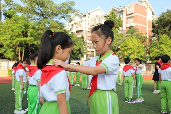 10月13日上午,开发区香晖园小学全体二年级师生及四年级的队员代表齐聚一堂,在学校操场举行“传承红色基因,争做新时代好队员” 主题队日活动,120名新队员在火红的队旗见证下,光荣加入了中国少年先锋队。