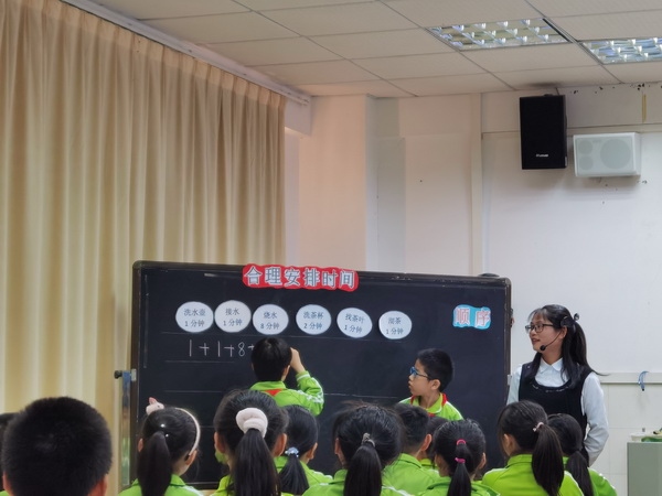 想要合理地安排时间,找到最优方案,那就一起去曾彩凤老师的数学课堂上看看吧。从“沏茶”,到“吃感冒药”,到“妈妈做饭”,情境一个接一个,学生在小活动中很快体会到高深的“统筹学”知识。曾老师充分发挥电子白板的优势,充分配合教学,效果突出。