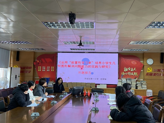 2020年12月18日上午,开发区第一小学举行区级教育科研课题开题报告会,三个区级课题《小学语文中高段古诗群诗教学实践研究》、《运用“前置性学习单”培养小学生几何图形解决问题能力的实践与研究》、《运用绘本培养小学低年级学生阅读能力的实践研究》精彩亮相,开发区第一小学教务处分管领导以及课题组全体成员参加此次会议。