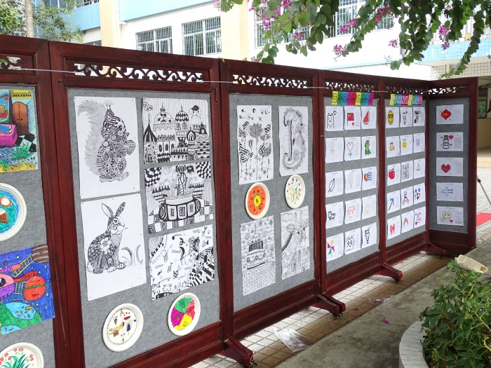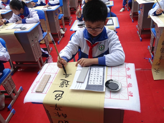 与此同时,学校小操场举行二、五年级硬笔、软笔书法及绘画展示;五、六年级在大操场开展数学嘉年华活动等。学生在丰富、有趣的活动收获学习的愉悦,展现出二小勇于创新的精神以及对培养“八有阳光少年”的坚定信念。