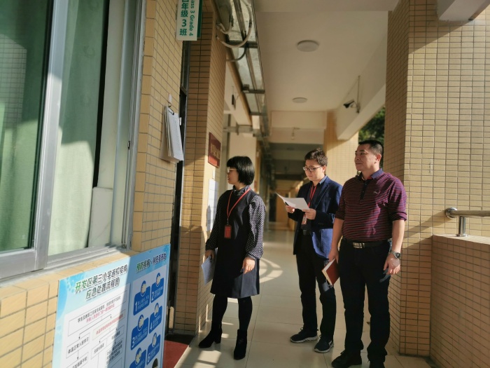 当天上午一到校,督学关影红副主任和张立超老师就进行现场巡视,围绕校园的安全、防疫工作、办学行为规范、学校课程安排等方面进行检查指导,巡视了全部教室,并重点关注心理健康工作的开展情况。
