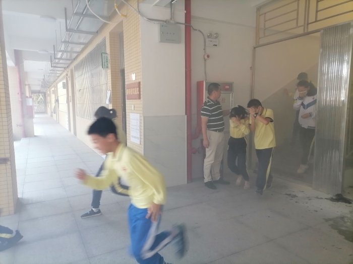 随着警报的响起,消防安全演练活动正式开始。全体师生按照学校演练方案各就各位,严阵以待。各位班主任、楼层指挥教师迅速到班到岗,沉着冷静地指挥学生用手、袖口、湿巾等捂住口鼻,有序撤离各班教室,沿指定路线低头弯腰快速下楼到大操场集中。随即,各班主任清点人数,并逐级向上汇报。安全演练共用时3分42秒,1000多名师生全部疏散完毕,整个过程快速、安全、有序。