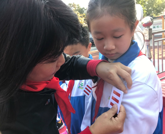 12月25日下午,大队委候选人在学校综合电教室进行了竞选演讲以及才艺展示。少工委副主任曹怡老师、大队辅导员阮结连老师、少工委委员罗建平老师及二至六年级中队委出席了此次活动。每位队员用大方自信的演讲,表达了自己对少先队工作的热情,为队员们服务的热忱以及对大队委职责的认识和做好少先队工作的坚定决心。队员们富有激情的演讲和精彩的才艺展示,不时赢得在座评委和队员们的阵阵掌声。评委老师和中队委根据个人荣誉、特长、现场展示以及民主投票评分等综合评定,共推选出13位优秀的大队委员。并在12月28日周一升旗仪式上,大队部举行了庄严的大队委员授章仪式,胡冬梅校长为本届大队委员佩戴臂章。