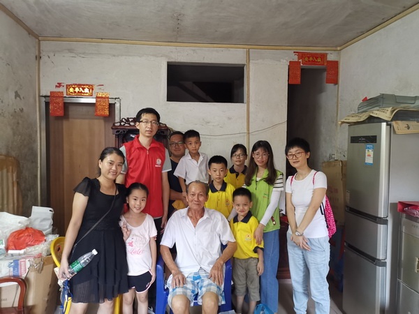 制作好月饼后,校亲子义工家庭分成三组,去探望张家边、海滨、联富三个社区的十几户孤寡老人。在社区社工的带领下,香晖园小学亲子义工家庭的老师、家长和孩子们带着刚刚做好的月饼和一些生活用品看望了孤寡老人,为老人们送去了节日的温暖和祝福。