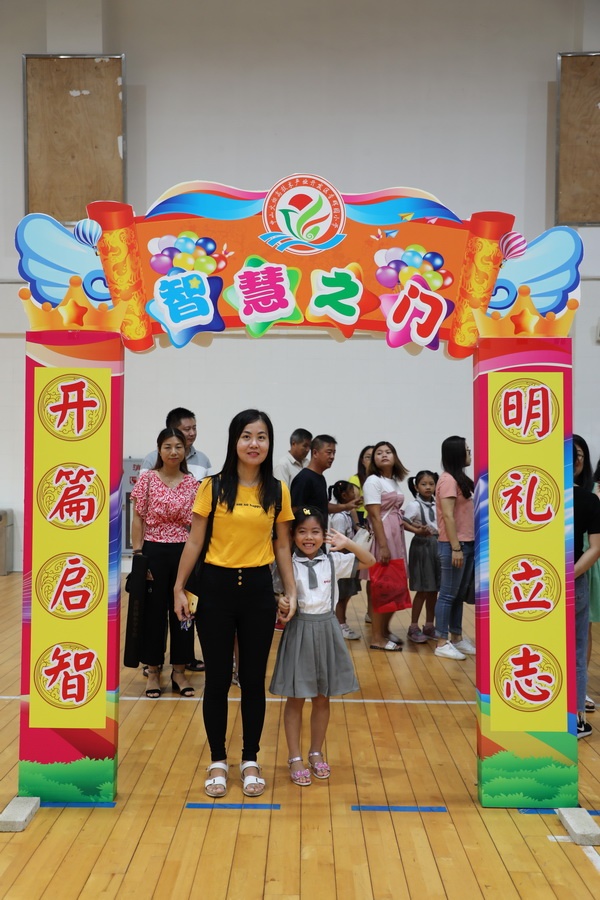 典礼一开始,全体一年级新生在家长的陪同下,共同穿过“智慧之门”,寓意跨进知识的殿堂,努力学习,早日成为栋梁之才。德育处王铎副主任主持了此次典礼,代表全体教师对一年级新生的到来表示热烈的欢迎和诚挚的祝贺。