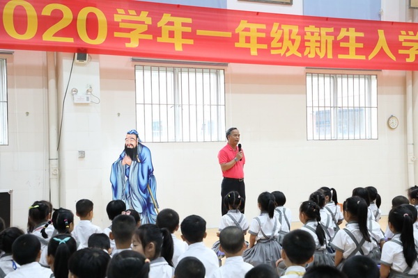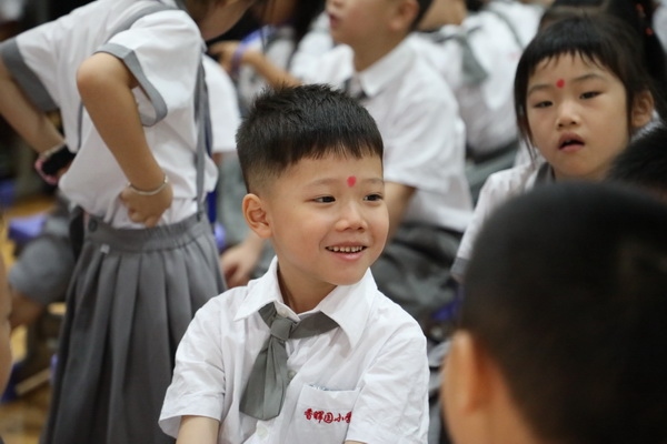 9月2日上午8点,香晖园小学600多名师生、家长欢聚学校体育馆,举行2019-2020年度新生入学典礼。