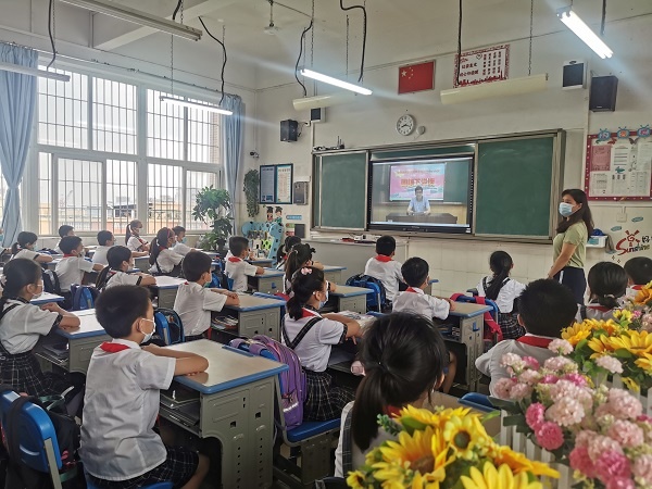 惠风和畅,鸟语花香,凤凰花开,少年归来。在经历了一个漫长而又难忘的寒假,终于迎来了四、五、六年级学生复学返校。5月18日,开发区中心小学举行了复学返校的第一次升旗仪式,伴随着庄严的国歌,五星红旗冉冉升起,全体学生在教室里面向国旗行少先队礼,全体老师行注目礼。