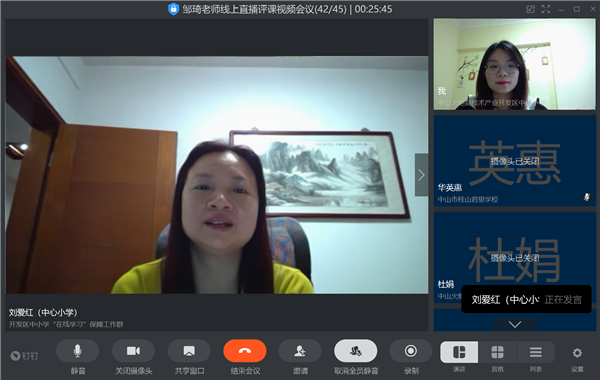 4月22日上午9点30分,在钉钉平台,一场在云端的英语教学研讨活动开始了。开发区中心小学五1、五2班的同学们以及开发区中心小学、开发区第三小学、开发区第五小学的英语老师们参与了此次活动。本次活动由开发区中心小学英语科组长刘付仲怡老师主持,由开发区中心小学邹琦老师带来一节五年级英语复习课,向大家展示钉钉直播教学的魅力。