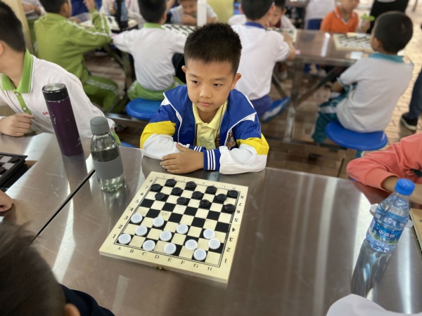 本次智力运动会包括围棋、国际象棋、中国象棋、国际跳棋4个比赛项目,开发区三小每个组别均派出了4名同学,在辅导老师冼燕飞的带领下,参加不同棋种不同组别的比赛。
