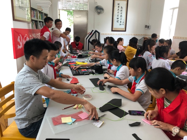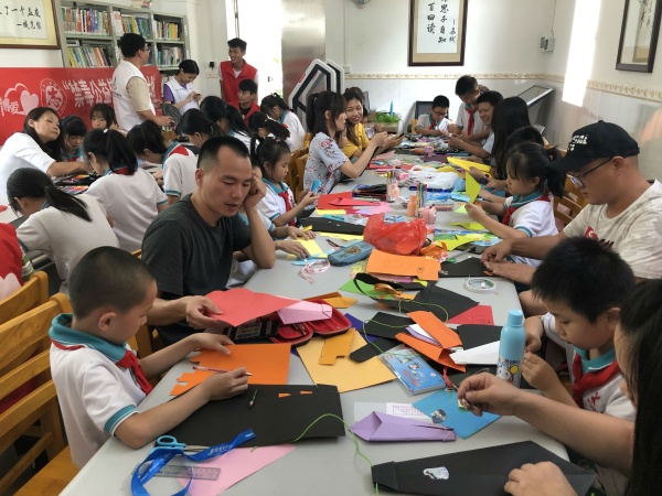接着爸爸们和孩子们开始进行折领带活动。爸爸和孩子动手摆弄着各种色彩鲜艳的卡纸,时而切切,时而雕雕,时而摆摆,剪裁出以“父爱”为主题领带。最后由学校大队辅导员罗征老师担任评委,评选出最佳动手奖、最佳成果奖及最佳创意奖并给予颁奖。