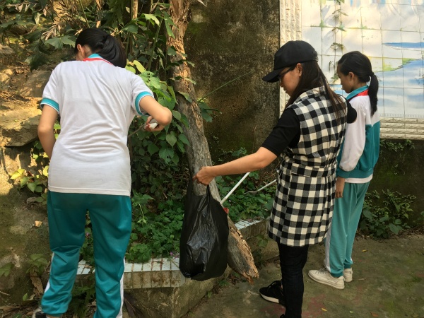 到达沙边村良德公园后后,负责本次活动的罗老师安排好劳动范围。对队员和家长进行分组,定好负责组长,并强调注意事项。接着队员们三个一群,五个一伙,就开始热火朝天的干起来。队员们不怕脏、不怕累,捡起石凳下的白色垃圾和丢在绿化丛中的所料袋;还有的地方有口香糖印,他们采用喷水、用铲子铲的方式,让公园的地面变得干净起来。在有些地方有些不易发现的烟头和枯树叶,他们也一点一点扫进垃圾铲。在队员们的共同努力下,公园地面的纸片、草丛中的垃圾袋都不见了,队员们看着自己劳动成果,都感到非常欣慰开心。