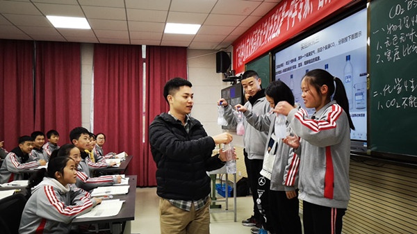 在大关一中,李胜潮老师上了一节《二氧化碳和一氧化碳》化学课;在翠华中学,申桂兰老师上了一节《二次函数综合复习》数学课;陈建兰老师上了一《Topic 3 Section A-What were you doing at this time yesterday?》英语课;朱立群老师上了一节《皇帝的新装》语文课,朱老师在课上自费为优秀小组颁发了奖品。