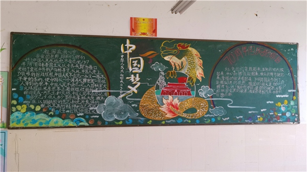只见各班级的精彩黑板报,或色彩丰富、图文并重;或故事感人、文稿长短轻重相联;或设计大气、标题富含深意。各班级的创作可谓特色鲜明。在多个班级的黑板报中,看到红旗、中国龙、天安门的元素大量出现。运用这些元素,是对祖国文化、历史的认同,深刻地体现了开发区一中学生的爱国情、报国志。本次黑板报评比活动,达到了预期的效果,取得圆满成功。