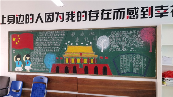 又是一年开学时,新学期经过两周的磨合,开发区一中的学生们逐渐找回了专注的学习状态,开始自治、自学、自评的在校生活。正值中华人民共和国成立70周年,为了开展广泛的爱国主义教育,提高初中生对祖国的认同感、自豪感,促进初中生增强爱国意识、养成良好习惯、培养高尚品质,开发区一中举行了以“我和我的祖国”为主题的班级黑板报评比活动。
