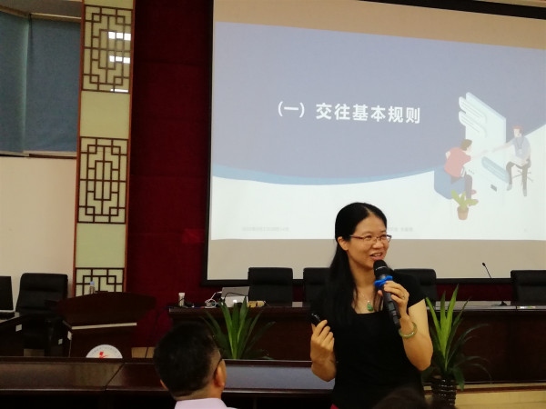 朱敏嫣老师结合一些具体鲜活案例,插播触人心灵的小视频,列举中小学教育教学中存在着容易被老师忽略的爱的负担、爱的伤害种种现象。她结合《中国中小学生心理健康发展报告》的具体数据,希望老师们掌握沟通漏洞原理,通过把控好交往距离、第一印象效应、视线交流边界的交往基本规则,熟练运用言谈礼仪与技巧,善用亲和力,夯实沟通基础,掌握沟通策略,提高沟通效率,促进和谐顺畅师生关系的形成。