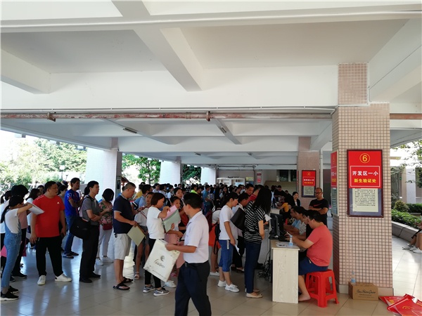 6月15日,火炬开发区一中启动2019年初一新生现场资料验证工作。来自区一小、区二小、区五小、区六小、区中心小、香晖园小学、育英学校、卓雅外国语学校和纪中三鑫凯茵学校毕业的火炬开发区户籍应届毕业生,以及大岭、宫花、窈窕村股民的小学应届毕业生子女,在火炬开发区一中参加本年度的资料验证。