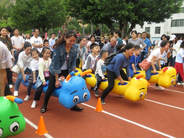 本届运动会分两场进行,上午低年级亲子运动会,下午中高年级田径运动会。亲子运动会上,运动会筹备组本着让更多学生与家长都参与其中的原则,特设置了拔河、亲子跳绳、接沙包、“摸石头过河”、“毛毛虫接力”等趣味十足的团体项目,充分体现了人人都是运动员以及团结向上、奋勇拼搏的体育精神。拔河比赛开始啦!家长之间密切配合,运动赛场上洋溢着家长和孩子们的欢声笑语。大家都热情地参与其中,充分拉近了家长和孩子之间的距离,让家长体验到运动中的快乐、童真。家长们的积极参与、孩子们欢呼助威,为活动添了更精彩的一笔,把此次运动会推向了高潮。每一个团体项目都竞争激烈,热闹非凡。每一个场景都展现着亲情的其乐融融、和谐与快乐!同时昭示着运动带给大家的活力与欢乐。